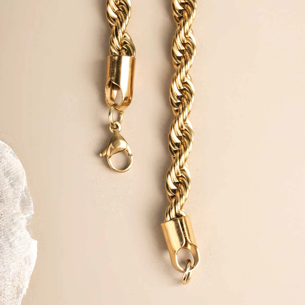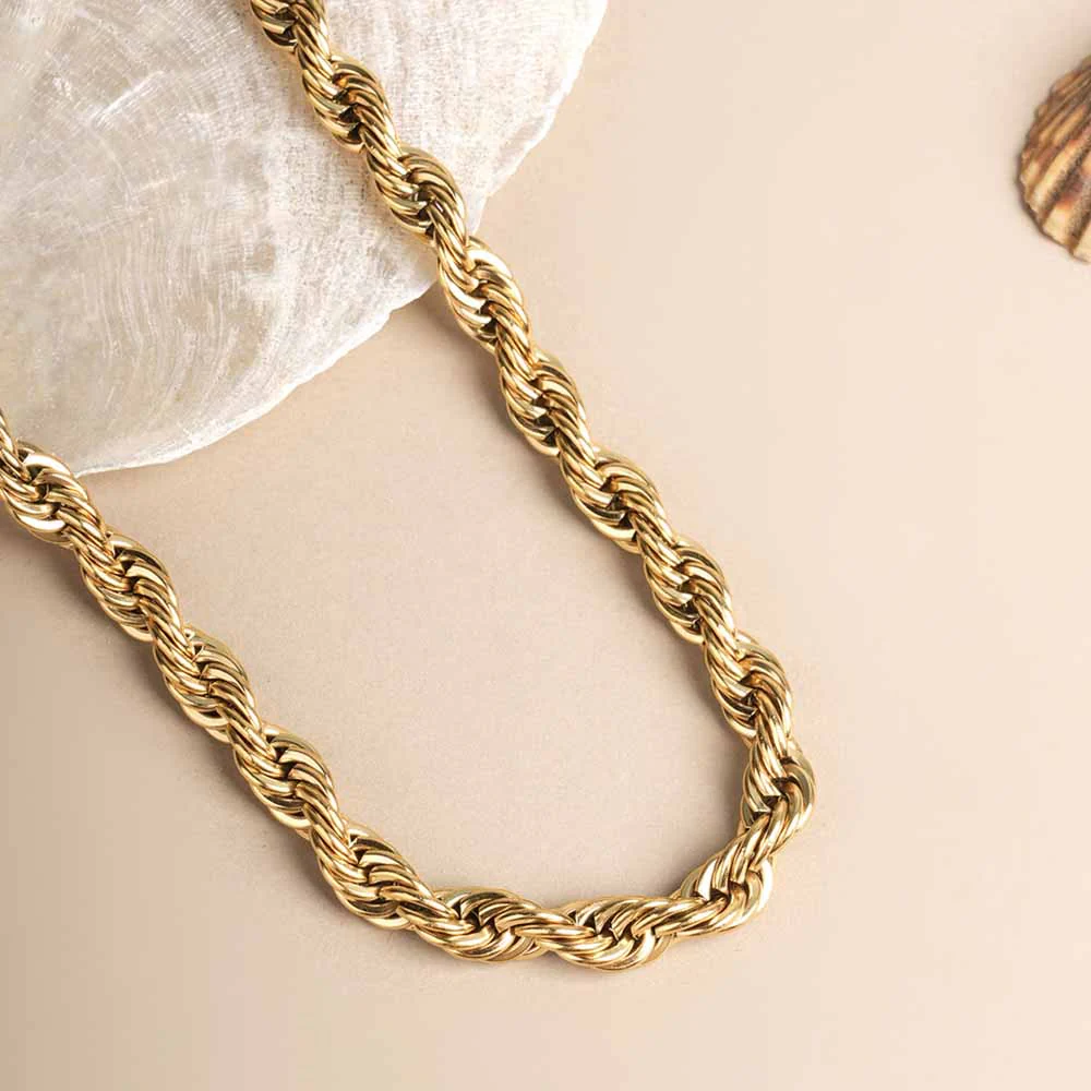Bold, masculine, and timeless, this Rope Chain is crafted in stainless steel with a radiant 18k gold tone finish. Its twisted rope design exudes strength and sophistication, making it a versatile statement piece for men who appreciate classic, high-impact jewellery. Perfect for layering or wearing solo, this chain elevates both casual and formal looks with effortless style.